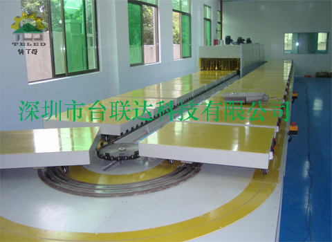 深圳台联达科技有限公司所研发出品的专业LED路灯老化线采用铜条导电方式,导电稳定安全。模拟环境温度可到80度老化测试,模拟电网高、常、低电压老化,高/压与高温冲击老化测试。可PLC编程控制,变频调速,、模拟电网/环境温度老化测试 ,循环小车式运行方便快捷。